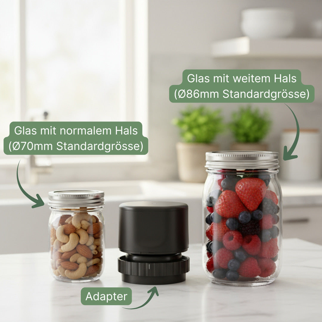 Ja — die mitgelieferten Vakuumdeckel sind wiederverwendbar. Öffne sie mit dem beiliegenden Deckelöffner und nutze sie erneut zum Versiegeln. So vermeidest du Einwegplastik und sparst Kosten.