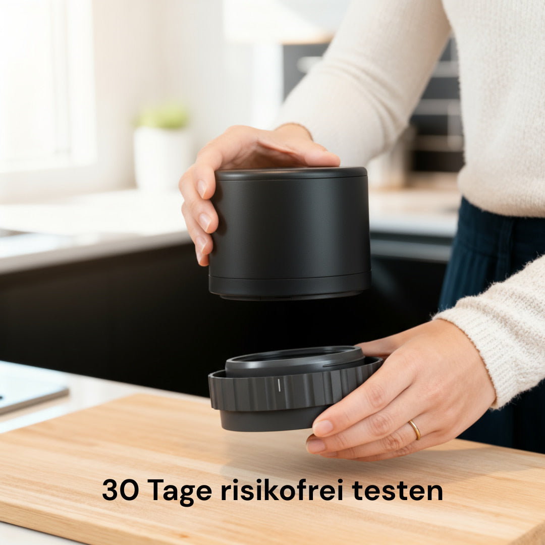 Ja — die mitgelieferten Vakuumdeckel sind wiederverwendbar. Öffne sie mit dem beiliegenden Deckelöffner und nutze sie erneut zum Versiegeln. So vermeidest du Einwegplastik und sparst Kosten.