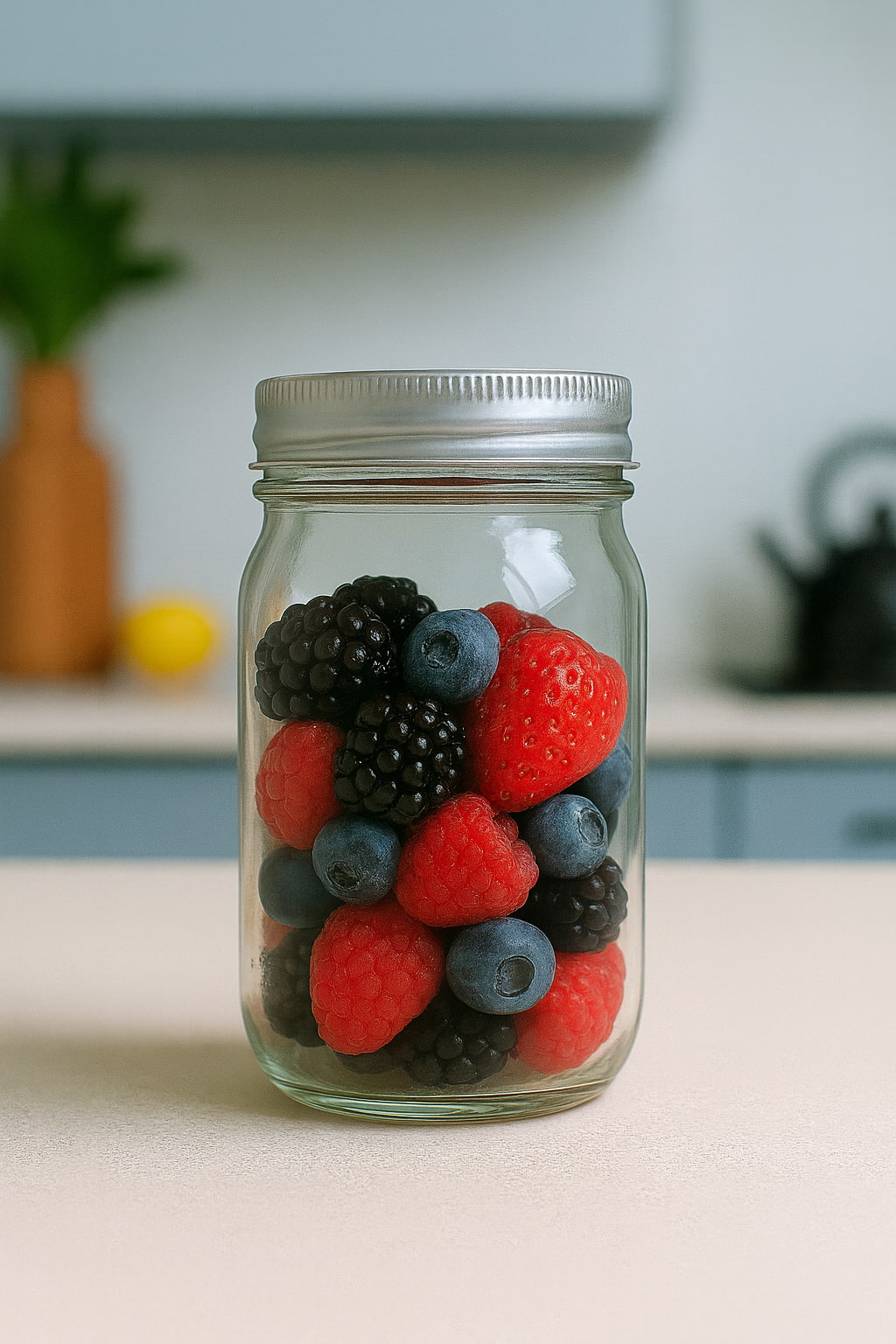 Fülle dein Einmachglas mit frischen Lebensmitteln und setze den Deckel auf.